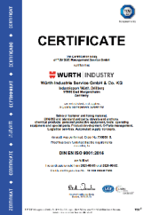 DIN EN ISO 9001:2015 | Certification: DIN EN ISO 9001:2015 of Würth Industrie Service |